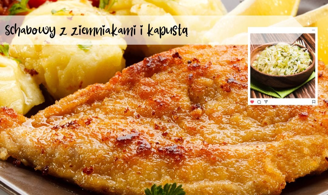 Gotowe! Możesz podawać schabowego z ziemniakami i kapustą jako danie główne.